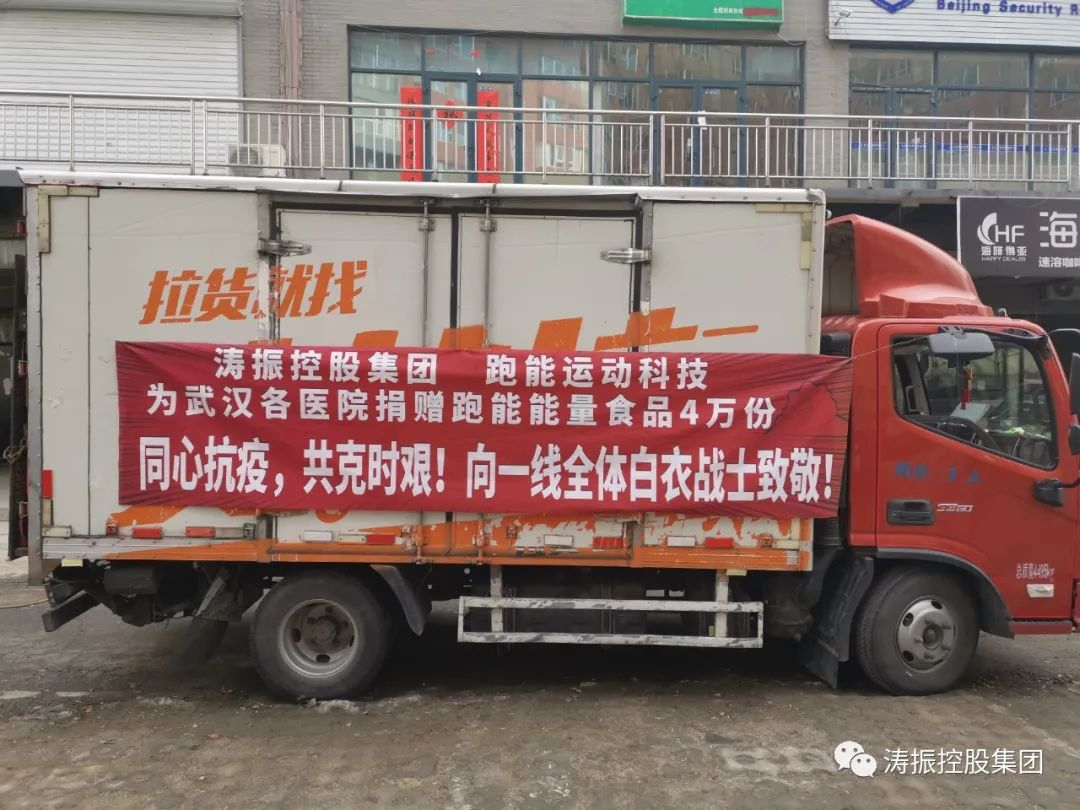 涛振控股旗下的北京跑能运动科技有限公司,正是一家专业提供运动营养食品的科技型企业。在毕雪涛董事长的协调下,跑能公司以最快的速度筹集出多种口味的共计4万份能量食品,市场价值30余万元,涛振控股也第一时间联系到了武汉的多家新冠肺炎定点收治医院和当地“抗疫”志愿者。