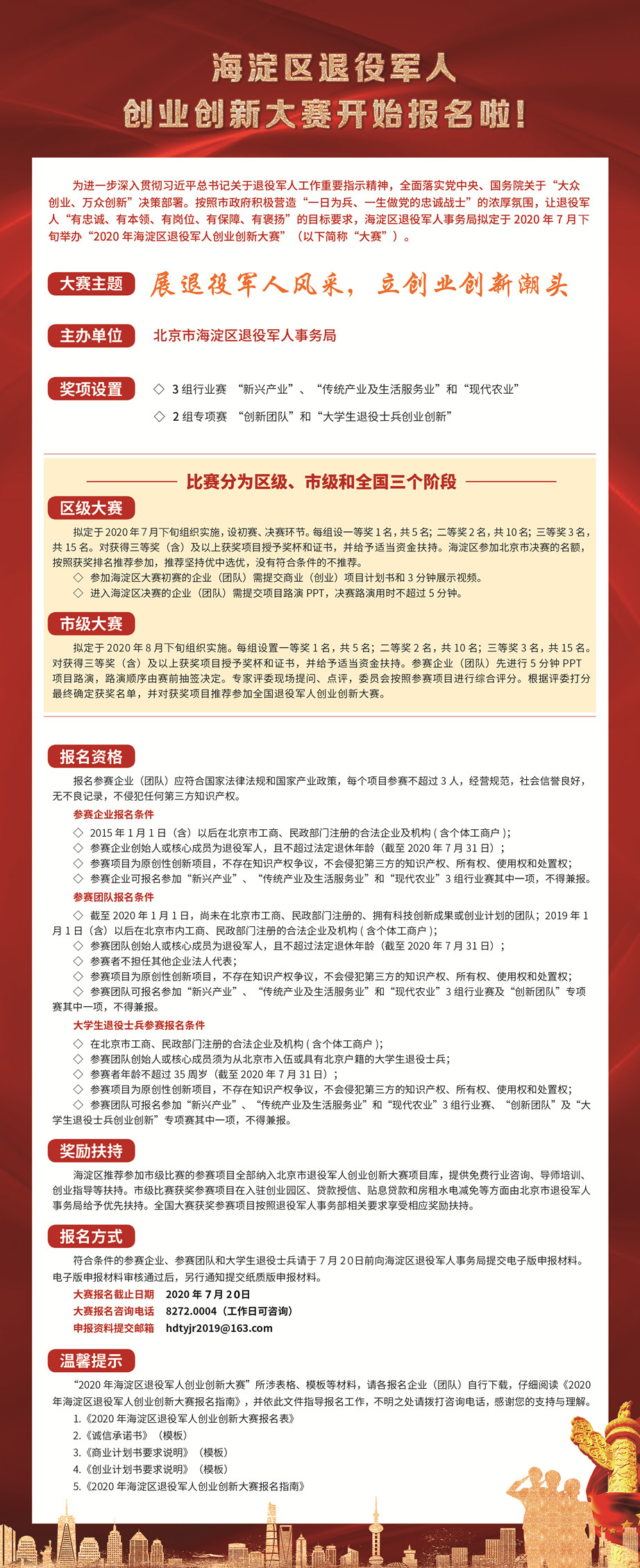 2020年海淀区退役军人创业创新大赛开始报名啦!