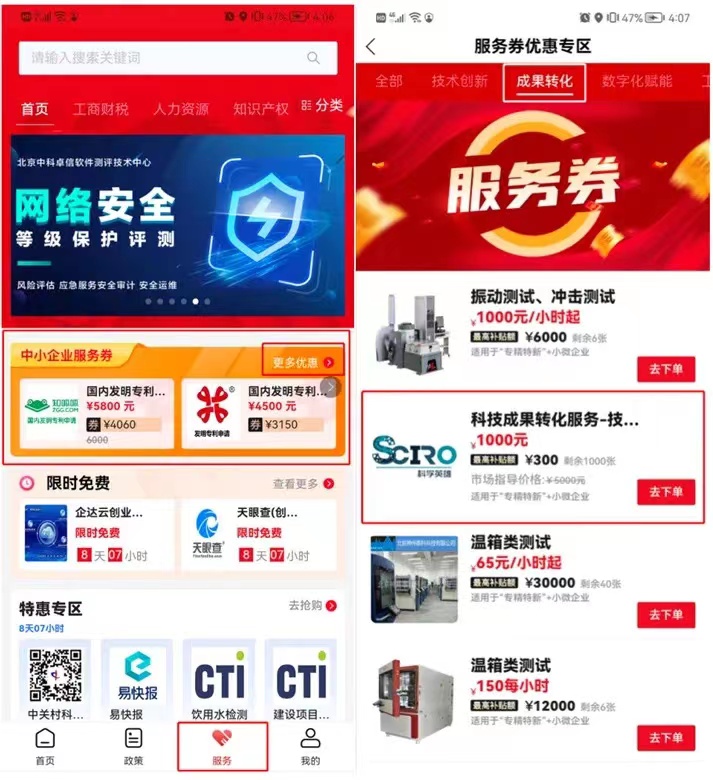 本年度服务券发放将依托北京通企服版App,企业下载并注册登录后,点击“服务”菜单进入“服务券专区”,再依据企业资质,根据自身需求选择带有“服务券”标识的服务产品下单。