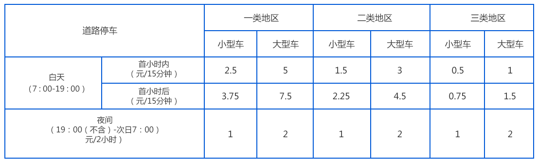 1.本市道路停车白天停车收费以 15 分钟为 1 个计时单位,夜间停车收费以 2 小时为 1 个计时单位,满 1 个计时单位后方可收取停车费,不足 1 个计时单位的不收取费用。