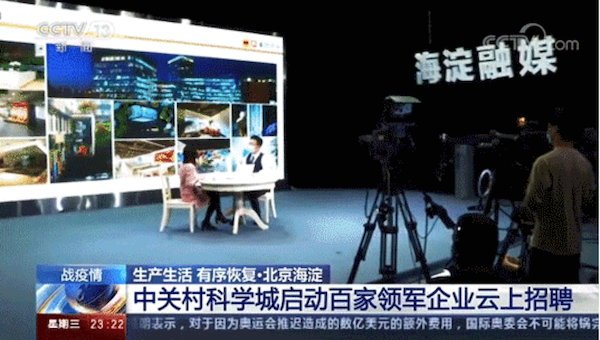 “云直播”人气爆棚。4月22日、23日上午,海淀区委书记、中关村科学城党工委书记于军和10家中关村科学城企业招聘团队负责人,走进海淀区融媒体中心直播间,热情邀请网友加盟中关村科学城,携手创新创业创造。
