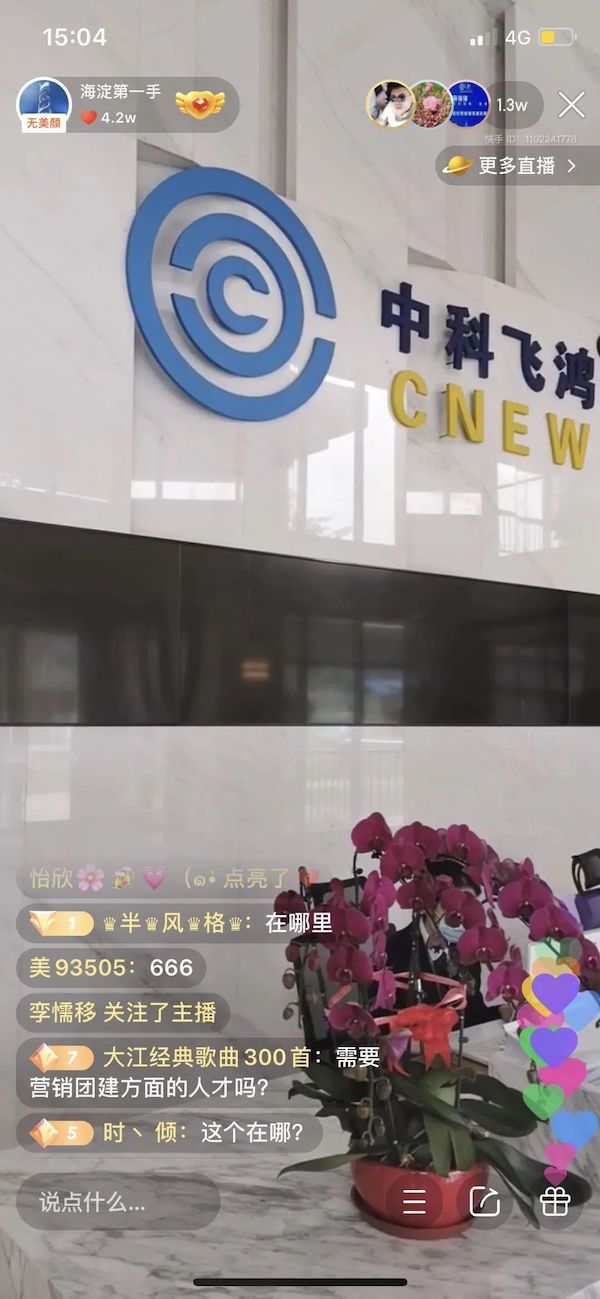 而在下午的直播中,海淀融媒主播直接将镜头对准了同有科技和中科飞鸿两家企业的内部,带领网友云体验办公环境,“身临其境”感受企业文化。