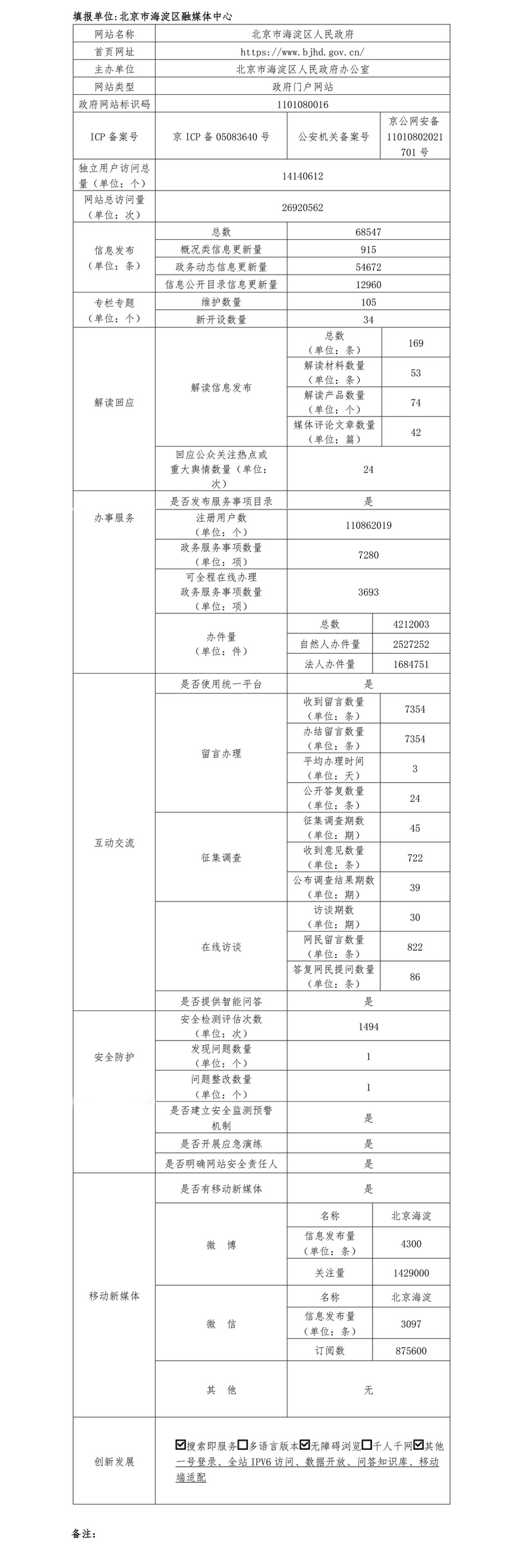 北京市海淀区人民政府网站工作年度报表(2025年度)